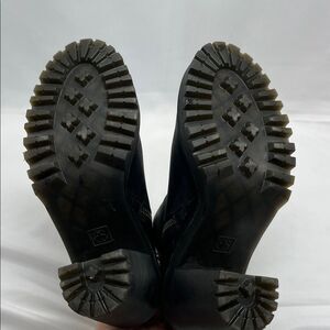 This is a great pair of black leather Dr. Martens Magdalena chunky heeled boots! They are a women's 9. There are some very slight scuffs on leather, please see last picture.