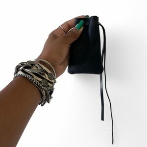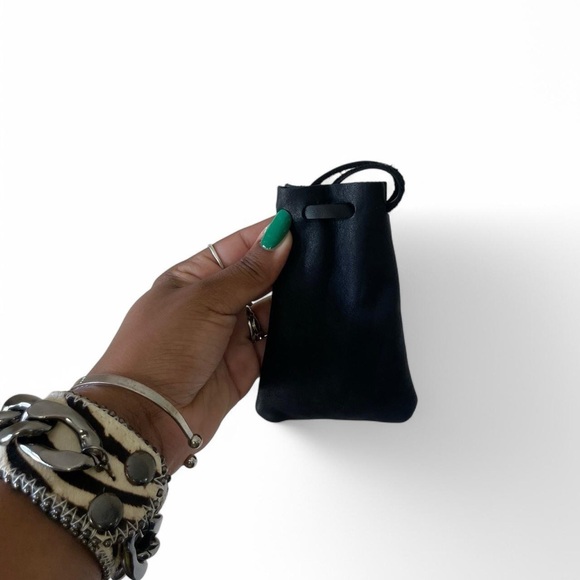 Sleek black leather pouch with drawstring closure. Perfect for small essentials.