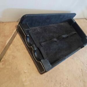Black Leather File Folder Organizer Charging Station Letter Holder 12"x9"x10"