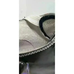Fantastic and extremely rare, possibly the only pair, by D:FUSE SCANDINAVIA who appears to be out of business. These are black high tops (appear to be leather but unmarked as such). They eyelet where the shoes lace have an irridescent plastic cover that creates a rainbow effect, changing color as you move. There is a grommeted strap at the heal, for design aesthetic, that is also irridescent.