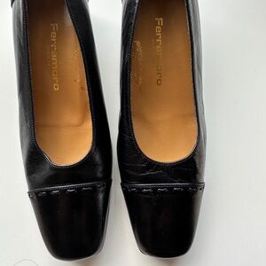 Black Leather Ferramoro low heel work shoes, size 36. Excellent condition, like new.