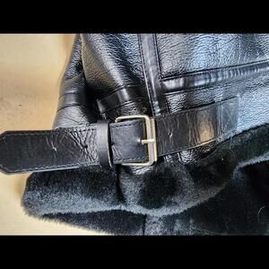 Black Leather Jacket with Faux Fur Collar