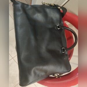 Sleek and stylish black leather men's bag, perfect for everyday use. Durable and versatile for any occasion. It is in good condition with a sign of usage. It is a laptop bag and very clean. there is a slight torn on the handle and picture will show.