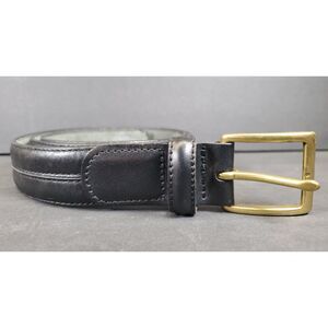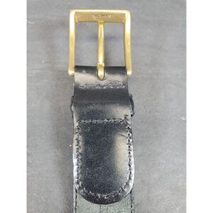 Black Leather Men’s Belt Size 32-34 Genuine Leather Casual with Brass Buckle