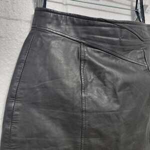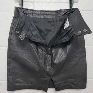 Amp up your style with this vintage black leather mini skirt! The thick, no-stretch material and edgy design make it the perfect statement piece for any rocker chick.