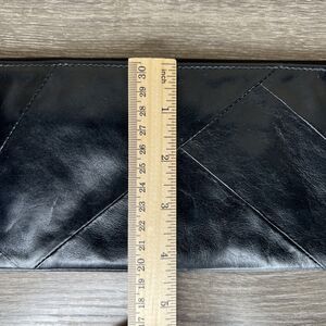 Black Leather Patchwork Wristlet Wallet Purse Card ID Holder Tassel