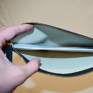 Peyton Leather Pouch set from Pottery Barn, never used. Black leather. Larger pouch is 12" long x 7.5" wide.