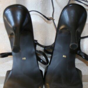 Black Leather Pump/ Closed Pointed Toe, Strapped Heels Size 8M