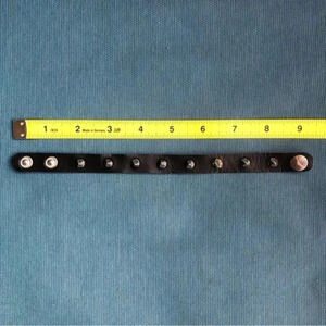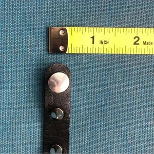 Bicast leather with metal alloy hardware. Please see photos for measurements. Model’s wrist is appx 7.25”. Bundle and save! I ship fast!