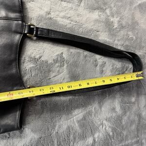 Black Leather Shoulder Bag Hobo Style Double Top Handle Purse Minimal Unbranded