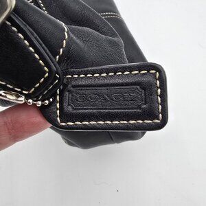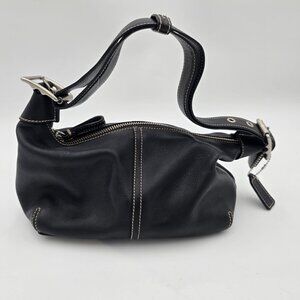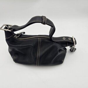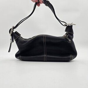 Black Leather Shoulder Bag With Contrast Stitching & Silver Hardware Coach