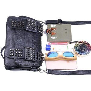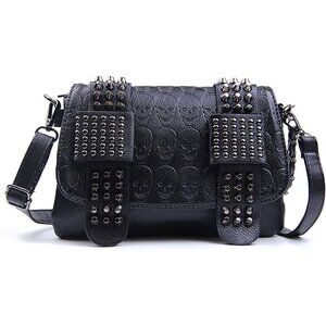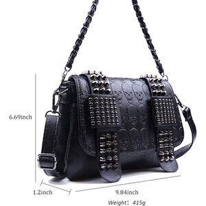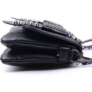 Black Leather Skull Crossbody Bag Chain Gothic Shoulder Biker Rocker Studded NWT