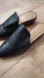 Stylish black leather slip-on mules. Perfect for casual wear.