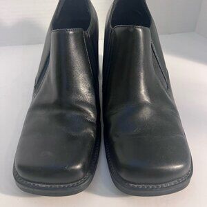 Black Leather Square Toe Slip-On Heeled Shoes Size 8 Womens