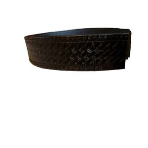 Black Leather Statement Belt Duck Buckle. Good preowned condition, size 95