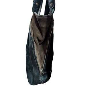 Black Leather Suede Shoulder Bag Large With Zipper & Magnetic Closure Tiangello