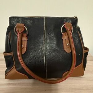 Black Leather Tignanello Purse Brown & Red Trim Silvertone Hardware Handbag