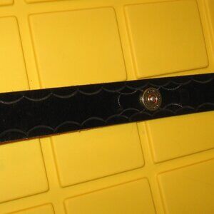 You are considering an unbranded black leather belt with ornate silver plate buckle and 4 metal conchos that look like the base of 12 ga shotgun shell. The belt is 1.5" wide and 46" long from leather tip to leather tip. It should fit people that wear 40" waist size to 44" waist size pants. Pre-worn excellent condition. Extremely macho style.