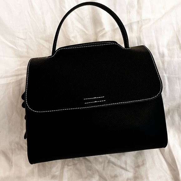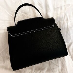 Black Leather Top Handle Crossbody Bag