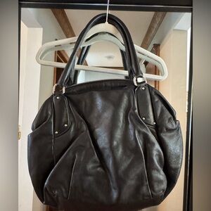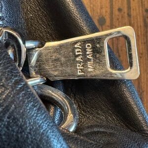 Well loved Prada leather tote, completely restored with mink oil and leather paint on scuff marks