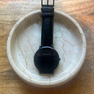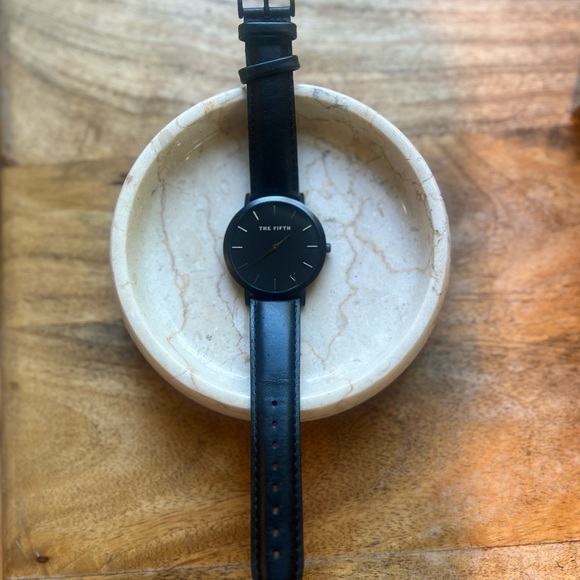 Elevate your style with The 5th’s sold out sleek black leather watch. Perfect for any occasion, this watch combines modern design with classic elegance.