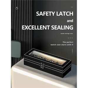 Black Leather Watch Display Box Organizer Case with Glass Lid 6 Slot Storage