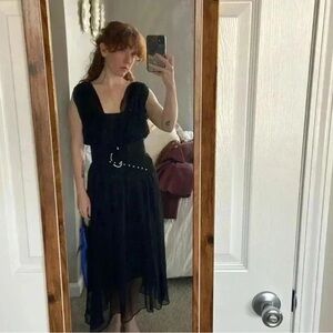 Black Leather Wide Waist Fashion Belt with silver hardware size XS/S