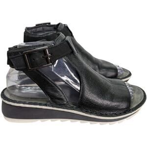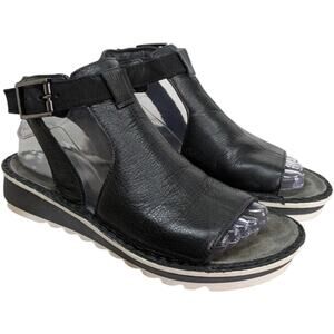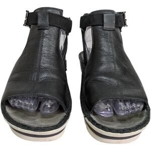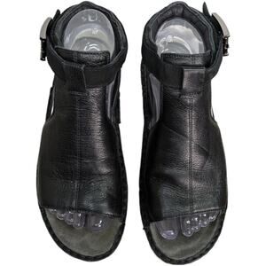 Step out in style with these chic black leather sandals. Perfect for any occasion, they offer both comfort and elegance.