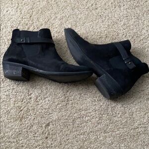 Flat black leather booty by brass plum size 9.5. Upper is soft leather with stretchy material by the ankle. Zip closure on the inside. Pretty good condition. Wear is shown in the pictures. Lots of life left. Smoke-free home.