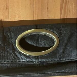 Can be folded and used under the arm or with hands thru the gold handle as a clutch