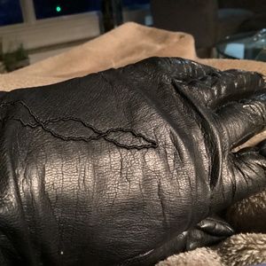 Some embroidery-like embellishments on the gloves, classic and utilitarian.