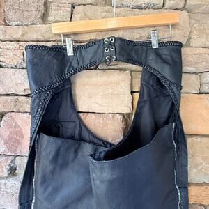 Black Genuine leather side zip/snap motorcycle chaps Large Adjustable Silver Buckle Waist