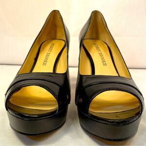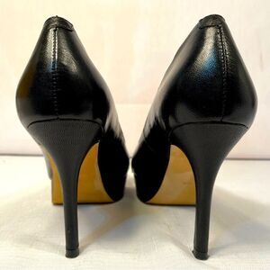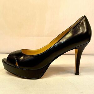 Black Leather Peep Toe Heels Size 6.5 EUC