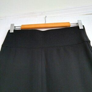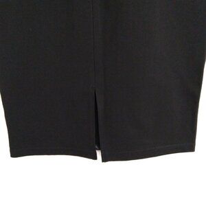 * Calvin Klein Power Stretch Black Midi Pencil Skirt Leatherette Front High Smooth Jersey Sides Back Slit Cummerbund Style Elastic Waist Washable Sz S