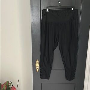Comfortable and stylish black leggings perfect for any occasion. Criss cross pattern followed by mesh up the sides stopping right below hip