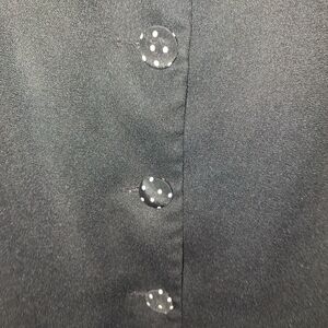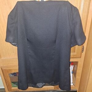 Elegant black Leslie Fay blouse with short sleeves. Features a stylish polka dot trim and buttons. It's pre-loved and in great condition. It comes in a size 12. Office, business, professional, career, work, church, top.