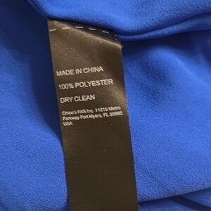 Oversized, can fit a medium size. Elegant blue midi dress with bold white floral pattern. Sleeveless design. Perfect for any occasion.
