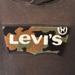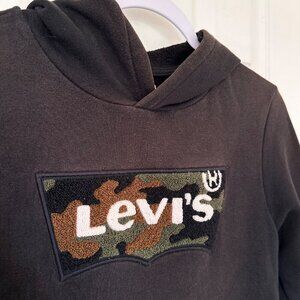 Black Levi’s Camo Batwing Boy's Graphic Logo Soft Fleece Hoodie Size Large 12 yr