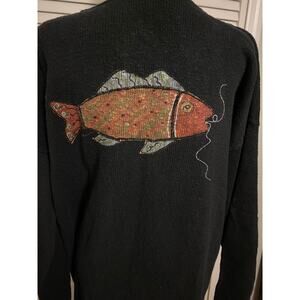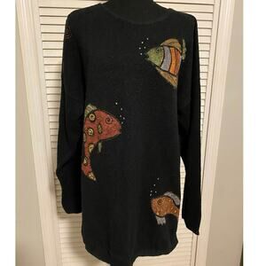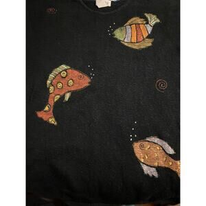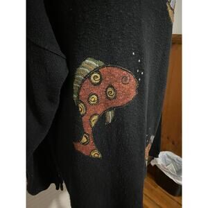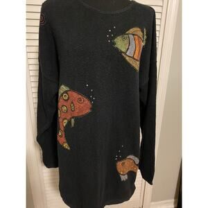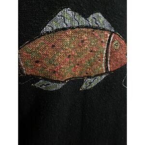 Black Light Slub Relaxed 100% Cotton Painted Fish Drop Shoulder One size Sweater