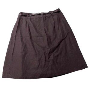 Black Linen Polyester Belted Skirt with Pockets Button Front Skirt
