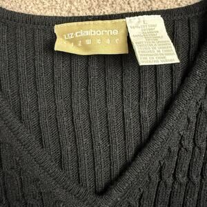 Black Liz Claiborne Sweater Vest Size L VNeck Cable Sleeveless Preppy Minimalist