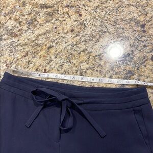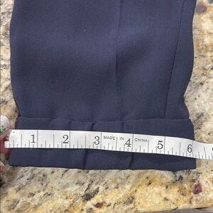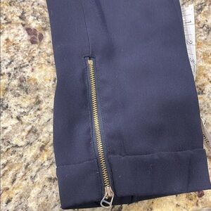 Stylish jogger style dress pants featuring gold zipper details for a modern look. Perfect for casual or semi-formal occasions. Bottom closure with tie and two functional back pockets. Color appears muted black 16" waste 25" inseam 6" cuff opening VVGUC due to loose thread on waste-band and super small pull on one leg (see pics) Fast shipping same or next day Bundle to save Smoke free dog friendly home