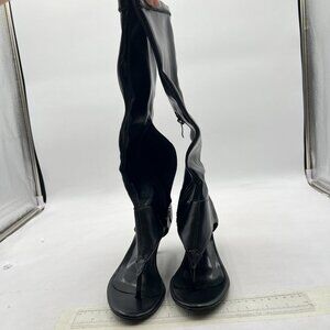 Black Long Boots Round Toe Sandals Booties Low Heels Flip Flop Side Zippers Shoe