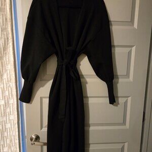 Long cardigan with puff sleeves by Express. Belt tie cinches the waist. Excellent condition! Material will not pill!