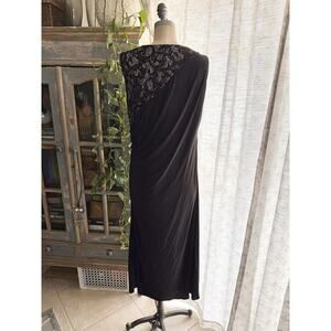 Black Long Formal Maxi Dress Gown Crochet Sequins Ruched R&M Richards Size 18W