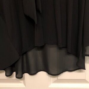 Look at photos for bow length, longer back, bell sleeve cuffs