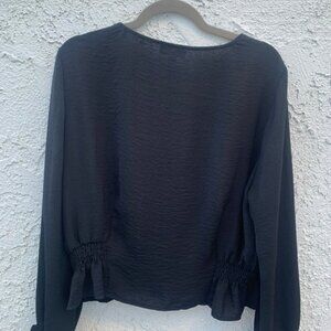 Black Long Sleeve Blouse, Top Shop, puff sleeve with cuff, V-Neck, Size L