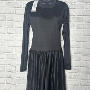 Black Long Sleeve Cocktail Romper with Crew Neck