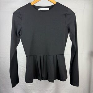Black Long Sleeve Crew Peplum Susana Monaco Blouse Size Medium