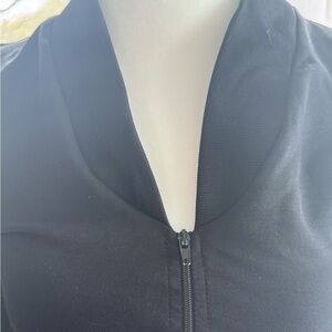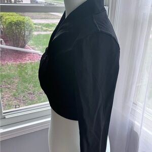 Stylish black cropped jacket with long sleeves. Perfect for layering.
